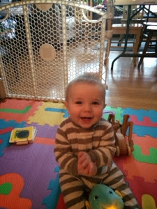Hooray! His front tooth finally broke through this morning!!! Hopefully this will mean improved sleep and temperament for a little while. It's been tough but he's doing better already. I'll get a pic posted as soon as I can capture one.
